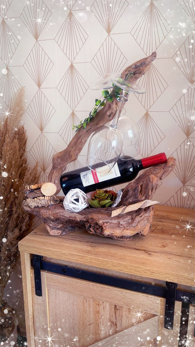 Support bois flotté, porte verres et bouteilles